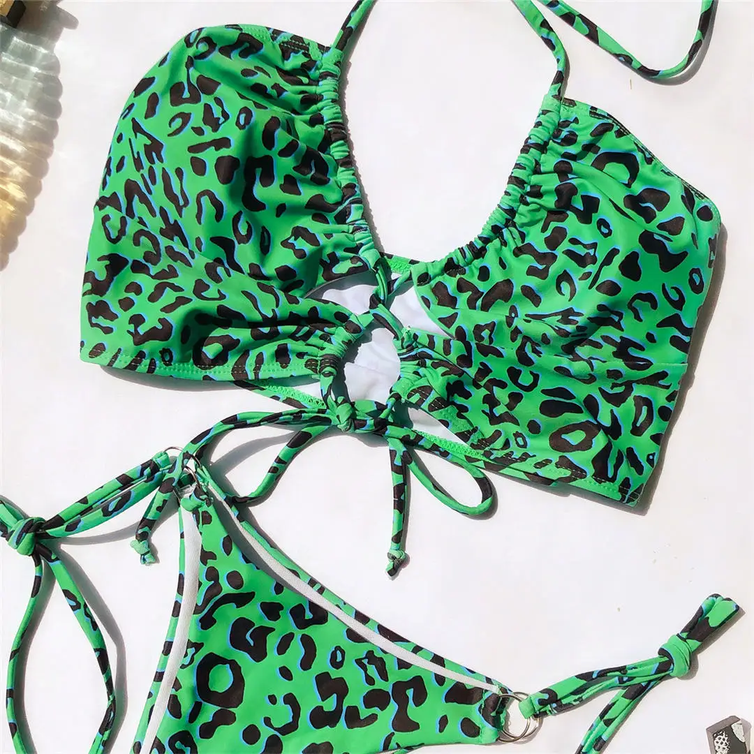 2025 Women Swimsuits Sexy Hollow Out Swimwear Leopard Bikini Set Womens Two-piece Bandeau Swimsuit Brazilian Bathing Suit